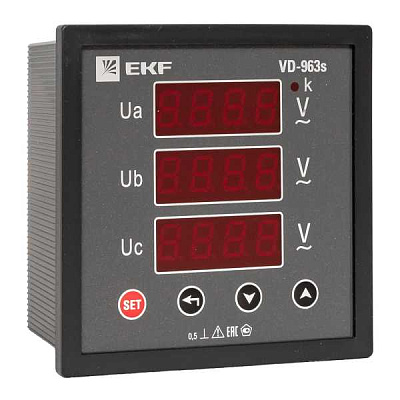 Вольтметр VD-963s цифровой на панель 96x96 (квадратный вырез) трехфазный в коротком корпусе EKF PROxima VD-963s