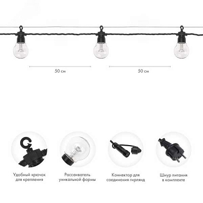 Гирлянда "Белт Лайт" 10м 20 патронов 4.8Вт IP65 провод каучук черн. 331-355