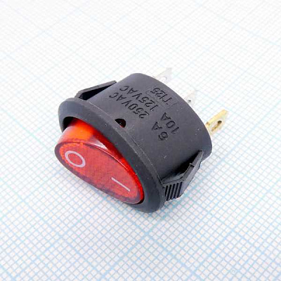 DAV R/3P ON-OFF КРАСНЫЙ Клавишный переключатель 6А, 250В, ON-OFF (SPST), красный/чёрный, клавиша - Овал, тип С (вогнутая), подсветка - Неоновая, 250 В, уст. разм. - 13,5х22,6 (по форме) мм