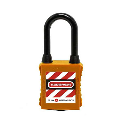 gwr001DN38ORGdp Замок блокировочный с нейлоновой дужкой и пылезащитой, дисковый цилиндр, высота дужки – 38 мм, диаметр дужки – 6.2 мм, нейлоновый корпус, размеры корпуса – 45х38х20 мм, цвет – оранжевый, 1 шт/упак