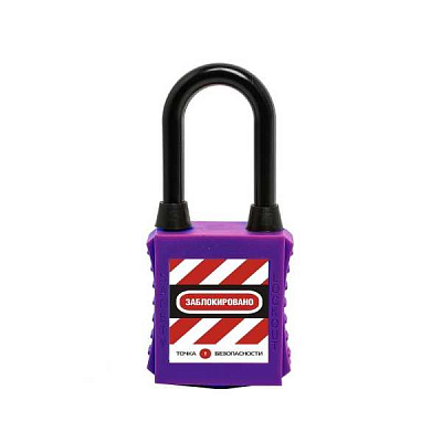 gwr001DN38PRPdp Замок блокировочный с нейлоновой дужкой и пылезащитой, дисковый цилиндр, высота дужки – 38 мм, диаметр дужки – 6.2 мм, нейлоновый корпус, размеры корпуса – 45х38х20 мм, цвет – фиолетовый, 1 шт/упак