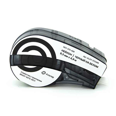 Картридж AL211-375499 Картридж АЛЬТЕР M21-375-499 с лентой из нейлона 9.50 мм х 4.90 м, черный на белом  (для принтера BRADY M210, M211)