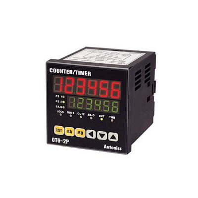 CT6Y-2P4 (220VAC) Цифровой счетчик-таймер, 72х36мм, 2 индикатора по 6 разрядов, сброс,счет групп, 2 выхода,100-240VAC