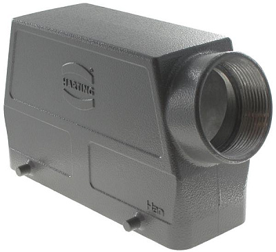 09300240521 Кожух (корпус) кабельных разъемов Han B 24B, высокая конструкция; 4 ножки | двойная защелка, боковой ввод PG29, алюминий /покрытие порошковая эмаль, серый RAL 7037, IP65/67