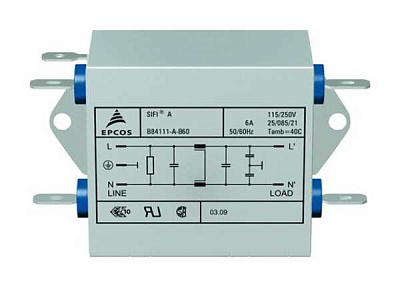 B84111A0000A020 Сетевой фильтр 2x2A/250V, SIFI-A, 2x0.1мкФ (Х2) + 2х4700пФ (Y2), 2х1.5мГн