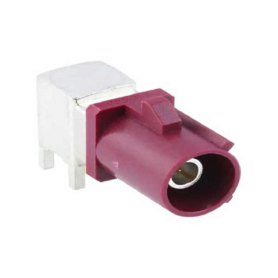 Описание - 50 Ohms, FAKRA SMB Jack, Right-Angle, Through Hole, Brass Body, Keying Option D, Bordeaux Viole.