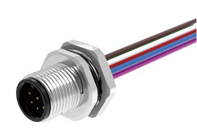 Вилочный разъем в панель M12A04C-MFHS-UC0.5 Вилочный разъем в панель, 4 полюса, M12, монтаж с передней стороны панели, гайка сзади, с проводом 0,5 метра, A-Code, 4А, 250V, резьба на гайке PG9, резьбовое соединение: латунь, не экранированный